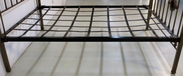 Das Bett ist dabei in gutem Originalzustand mit dem Alter entsprechenden Gebrauchsspuren.