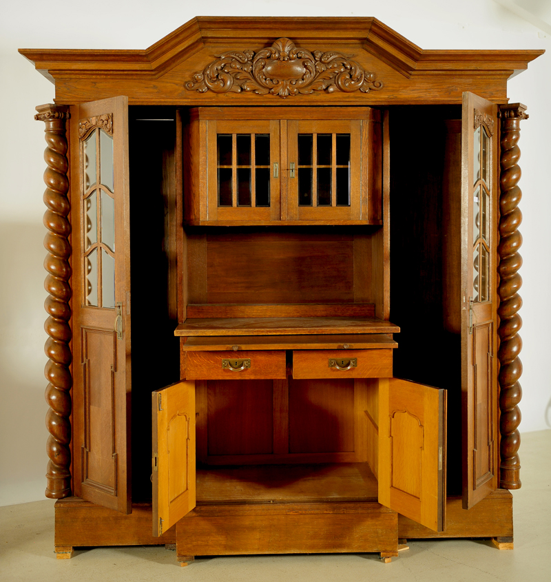 - Maße: Großes Buffet: Höhe 247 cm, Breite 240 cm, Tiefe 72 cm,Kleines Buffet: Höhe 185 cm, Breite 142 cm, Tiefe 62 cm