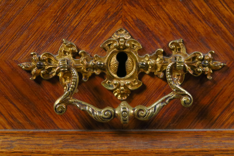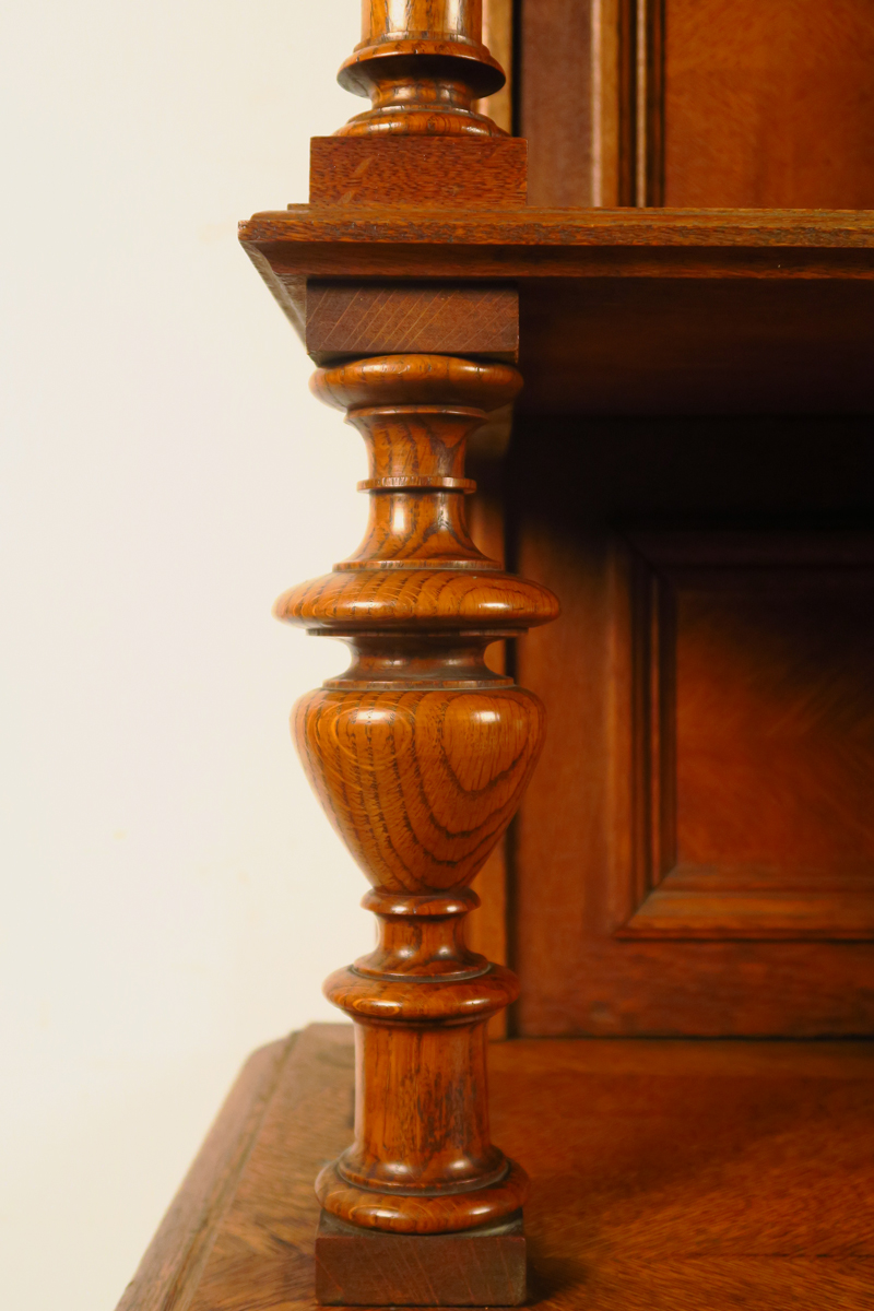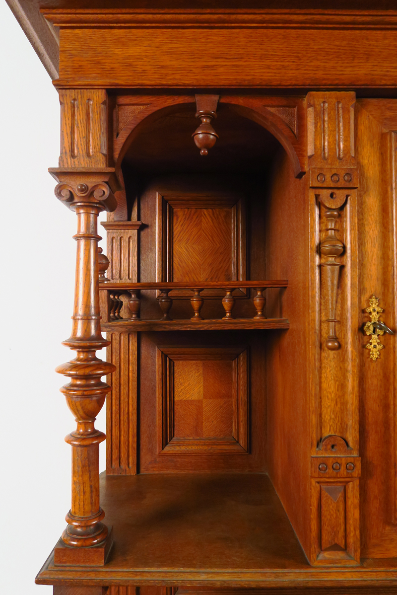 - stark gegliedertes Unterteil mit zwei Schüben, kassettierten Türen und schönen Pilastern