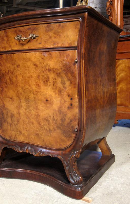 Hier bieten wir Ihnen eins herausragendes Büffet aus der repräsentativen Stilepoche des Art Deko, gefertigt um 1920 aus feinstem Nussbaum sowie wunderschönem Nusswurzelfurnier mit zauberhafter Maserung. Seine elegante Architektur und Linienführung machen dieses Exponat zu einem einzigartigen Möbelstück mit faszinierender Ausstrahlung.