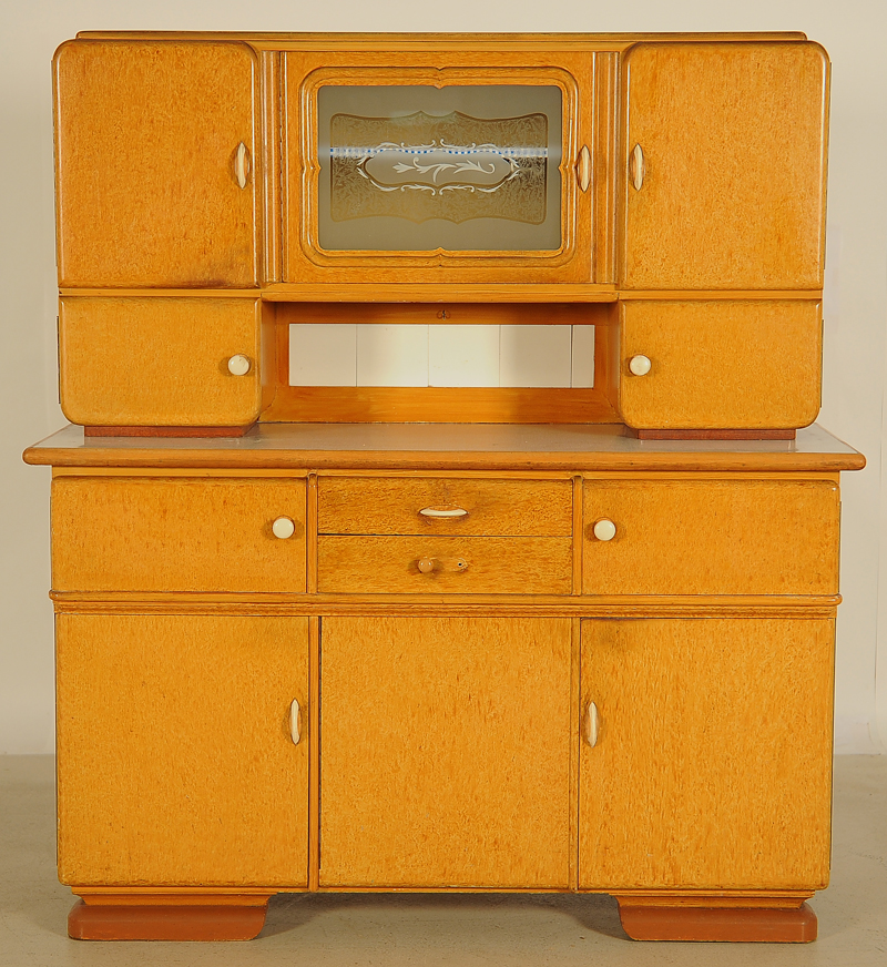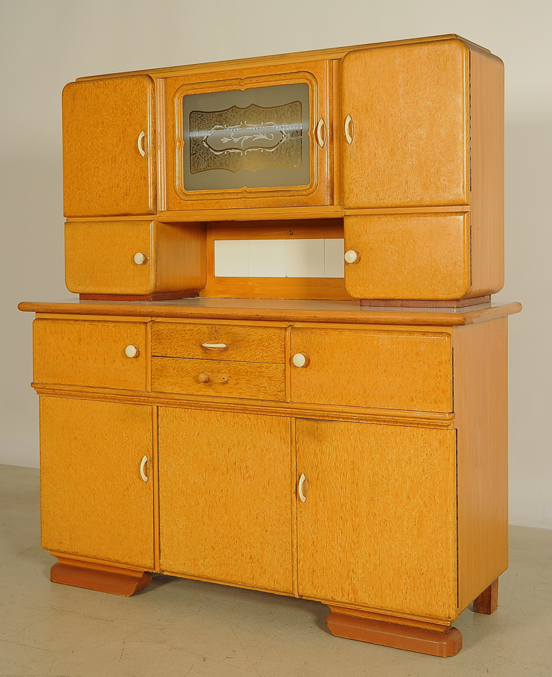Hier haben wir ein schönes Küchenbüffet aus den 1930er Jahren im Angebot. Dieses schmucke Möbel aus fein gemasertem Buchenholz gefällt durch seine elegante Gliederung und hohe Funktionalität.