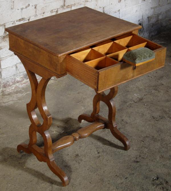 Hier bieten wir Ihnen ein elegantes Nähkästchen aus der Spätbiedermeier- Epoche gefertigt um 1840/50 aus Buche, massiv und furniert. Er begeistert durch seine unglaubliche elegante Linienführung und qualitativ hochwertige Verarbeitung.