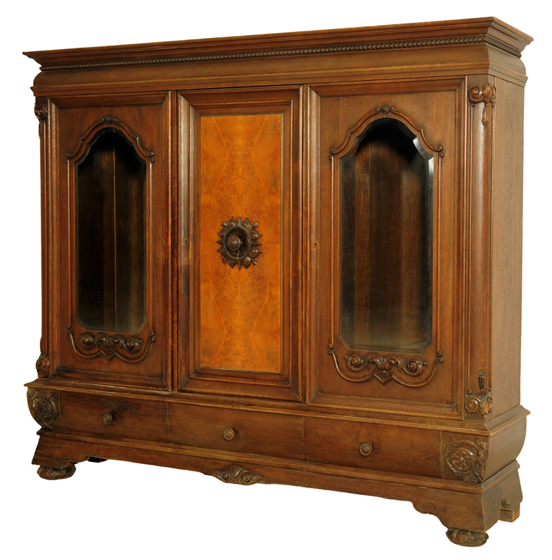 Heute bieten wir Ihnen einen sehr schönen Bücherschrank, gefertigt um 1910 aus bester Birkenwurzel, massiv und furniert. Seine elegante Linienführung und einnehmende Architektur kombinieren sich mit den stilvollen Details zu einem wunderschönen Blickfang.