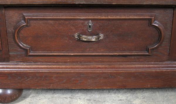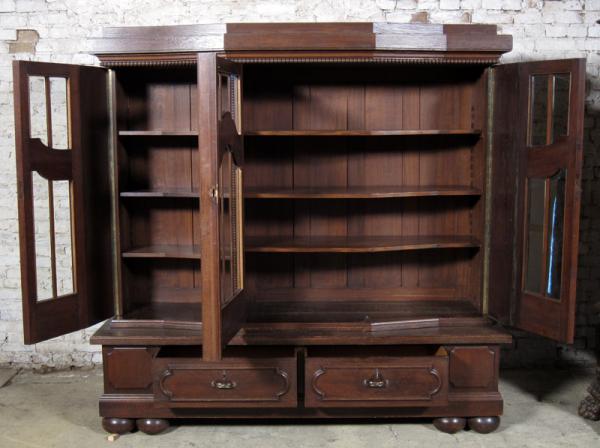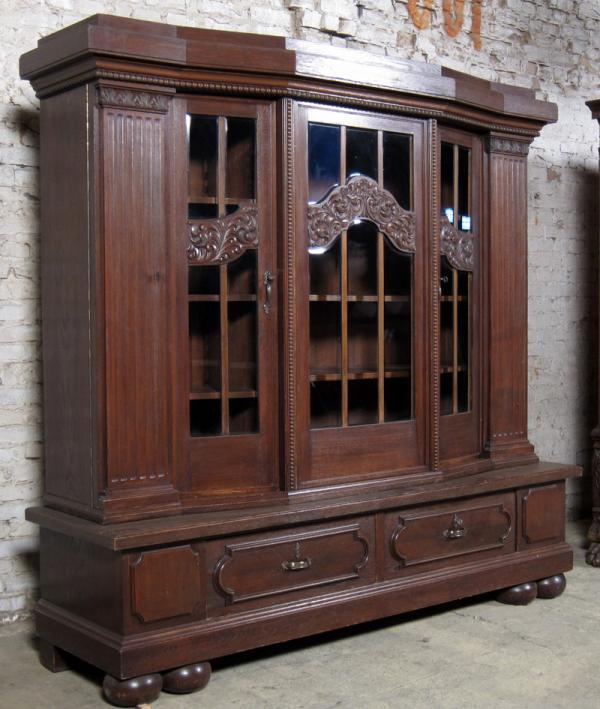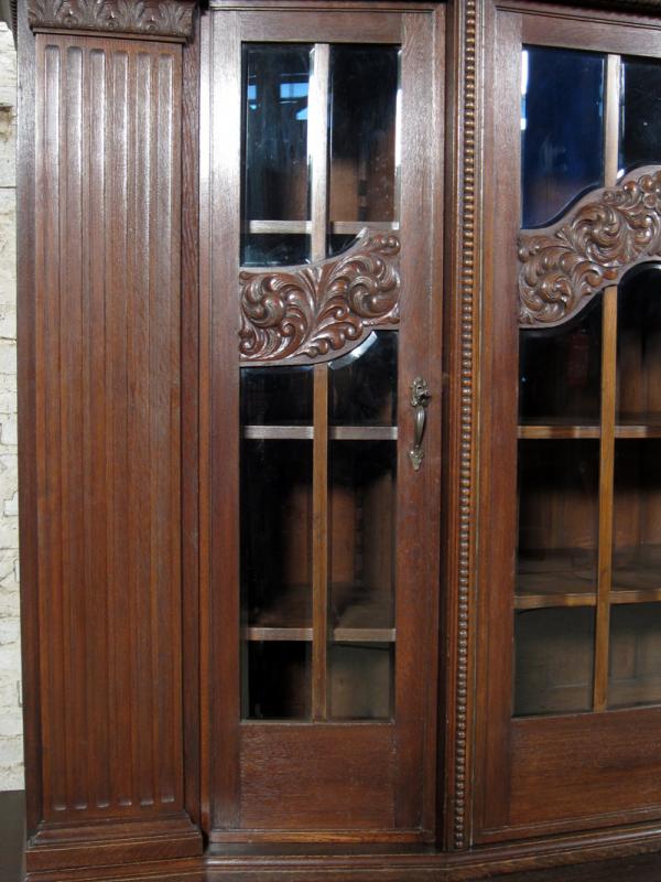 Hier bieten Sie auf einen überwältigenden Bücherschrank aus der Gründerzeit, gefertigt um 1910 aus bester Eiche, massiv und furniert. Seine unglaublich schwere Ausführung und doch filigranen Details machen aus ihm ein äußerst repräsentatives Exponat seiner Zeit.