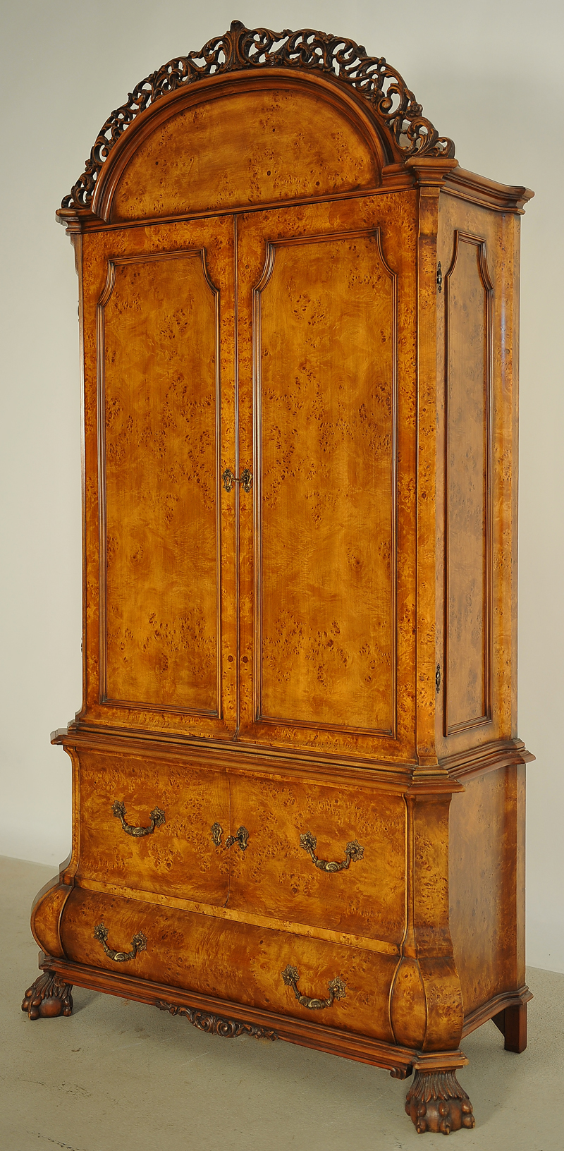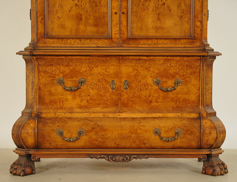 Hier bieten Sie auf einen unglaublichen Schrank der Neorenaissance! Er stammt aus den 20er Jahren des letzten Jahrhunderts und wurde aus schönstem Nussbaumwurzelholz gefertigt.