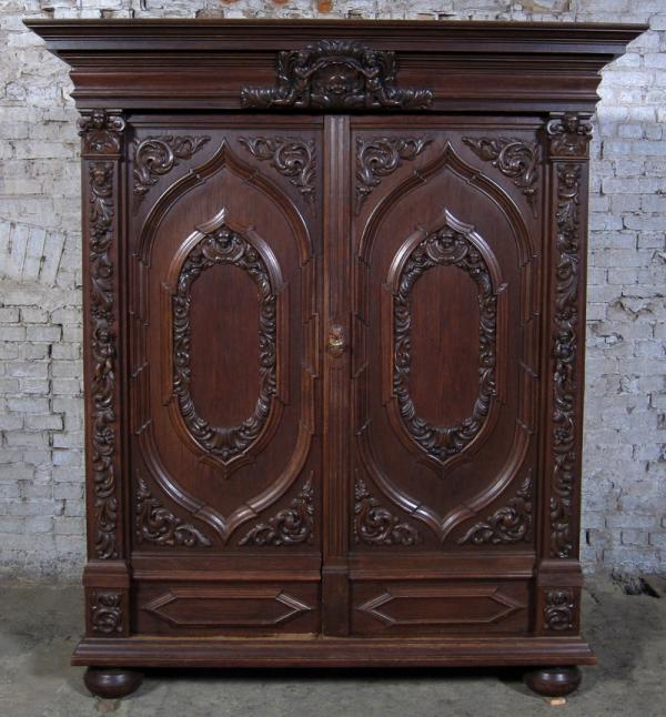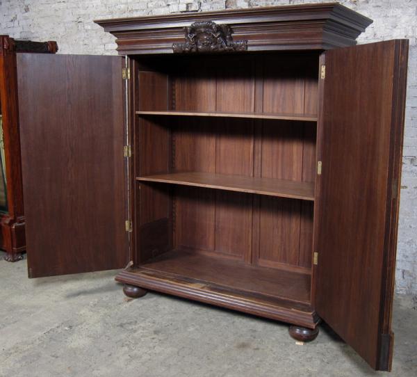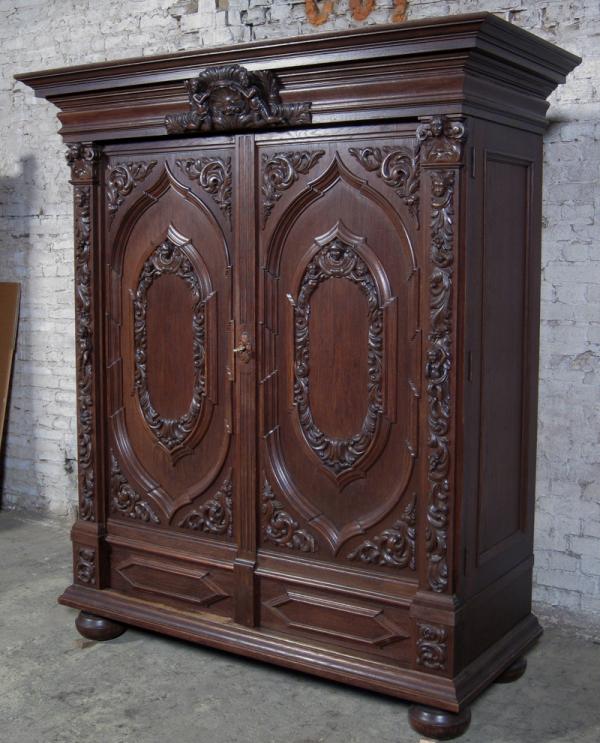 Hier bieten Sie auf einen traumhaft schönen Dielenschrank, einen sogenannten "Hamburger Schapp". Seine klassische, dem Barock nachempfundene Architektur wird mit fantastischen Stilmerkmalen und filigranen Details kombiniert. Gefertigt wurde dieses Schmuckstück um 1890 aus feinster Eiche, massiv und furniert.