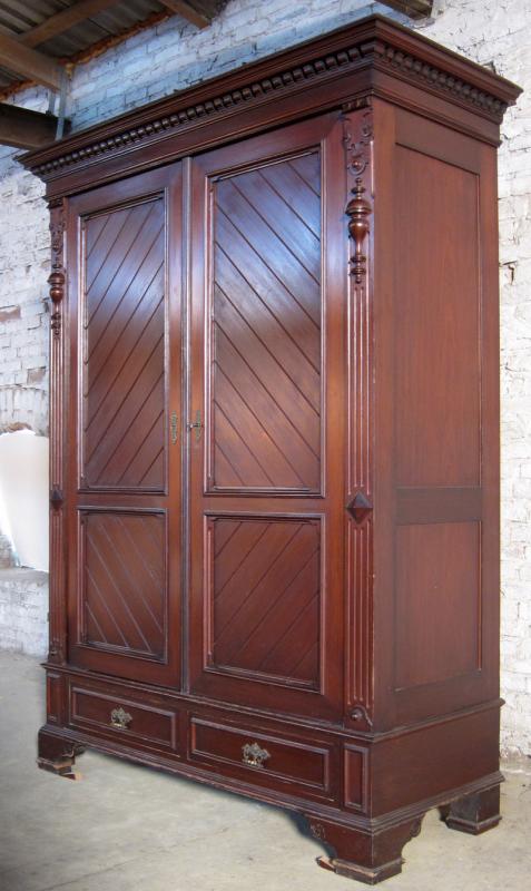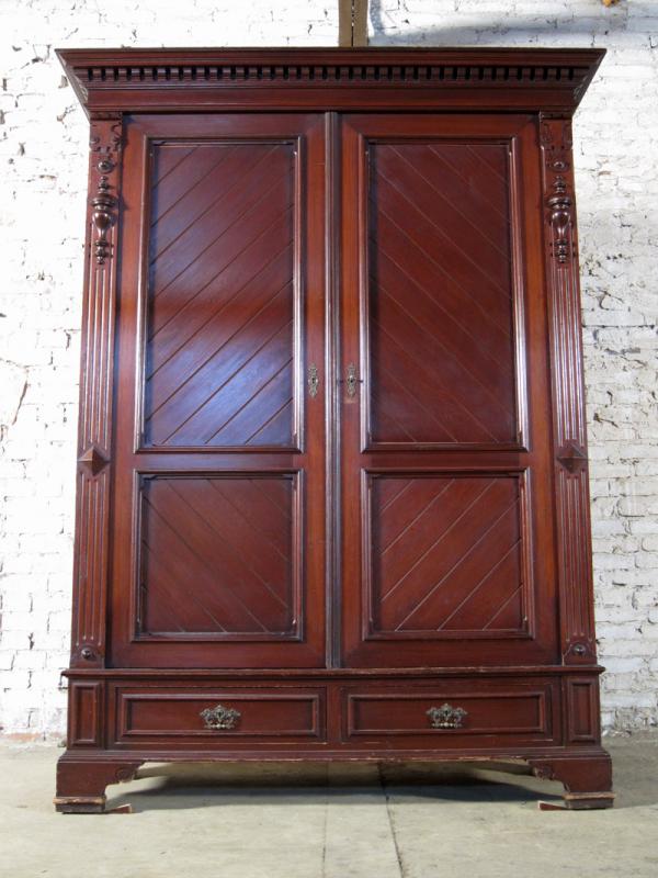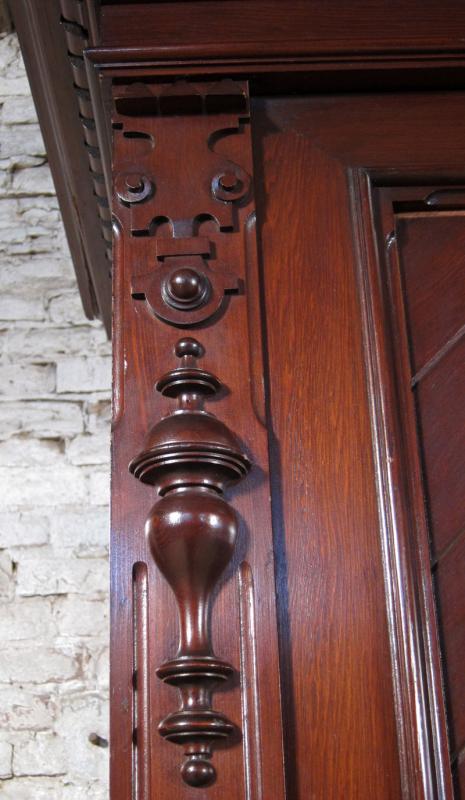 Hier können wir Ihnen einen atemberaubenden und einzigartigen Kleiderschrank anbieten, der der Gründerzeitepoche angehört und durch seine riesige Architektur und formberuhigte Gestaltung überwälitigende Ausstrahlung besitzt. Der Schrank wurde um die Jahrhundertwende aus massivem Weichholz gefertigt.
