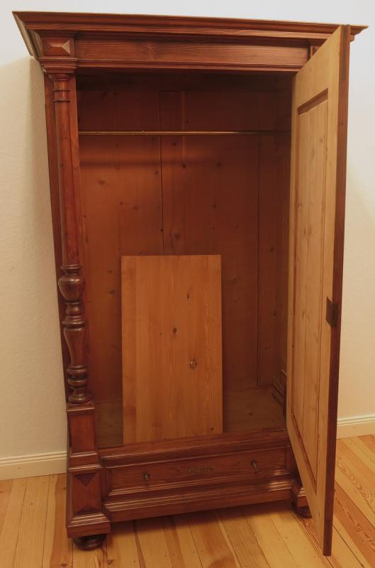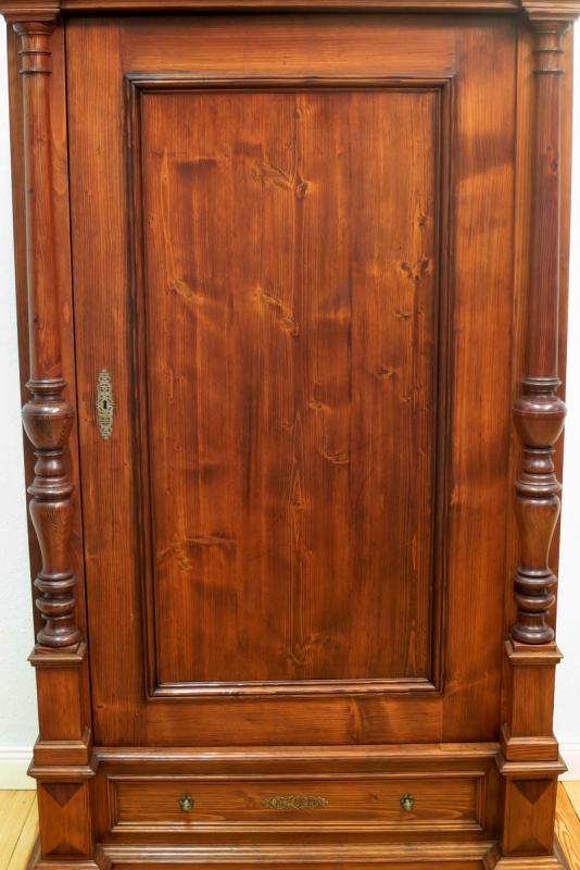 Hier dürfen wir Ihnen einen besonders zauberhaften Dielenschrank aus der herrschaftlichen Gründerzeit anbieten. Dieses eintürige Exponat wurde aus massiver Kiefer um die Jahrhundertwende gefertigt und begeistert durch seine klassisch erhabene Ausstrahlung.