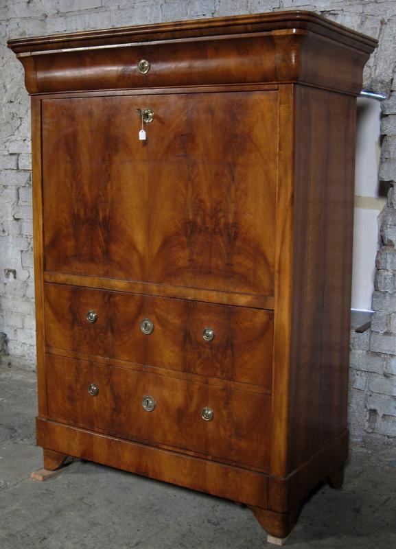Heute offerieren wir Ihnen ein Highlight des Biedermeier. Gefertigt um 1830/40 aus feinstem Nussbaum, massiv und furniert, besticht dieser Sekretär durch seine klarlinige und kantige Formgebung sowie überzeugende Qualität.