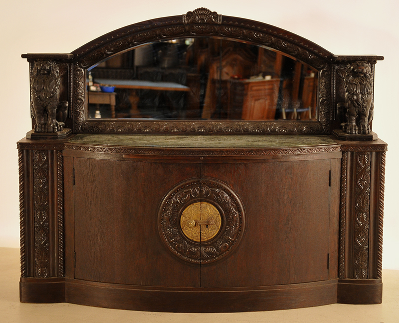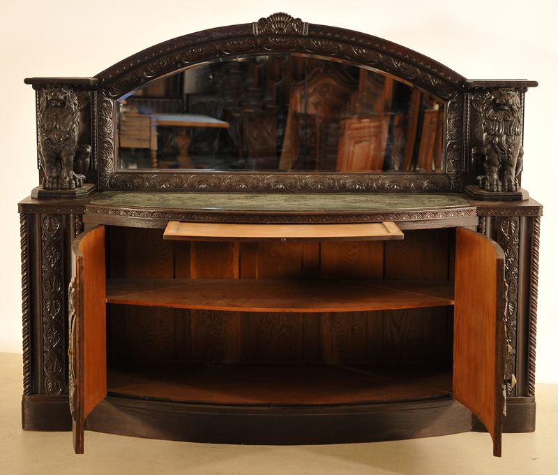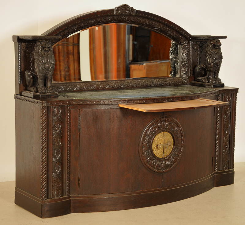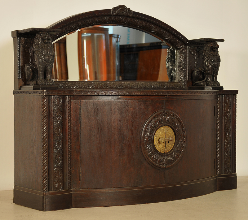 Heute dürfen wir Ihnen ein repräsentatives Exponat aus der Stilepoche des Historismus anbieten. Diese prunkvolle Anrichte wurde um 1900 aus bester Eiche, massiv und furniert, gefertigt und besticht durch ihre schwere, erhabene Ausführung mit einhergehender fulminanten Ausstrahlung.