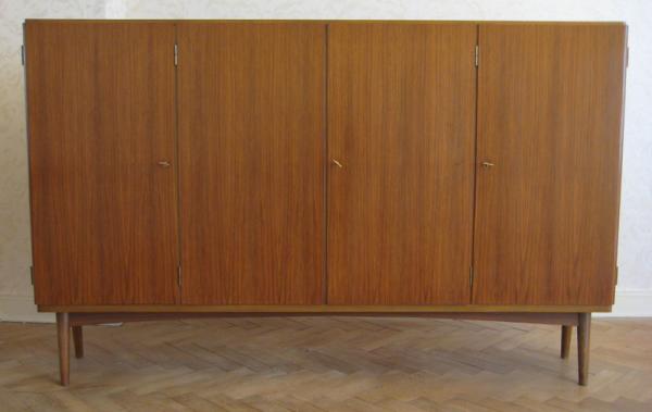 Äußerst interessantes Highboard, das im Design dem avantgardistischen Art Deko nachempfunden ist. Es besteht aus hochwertigstem Teakholz, massiv und furniert.