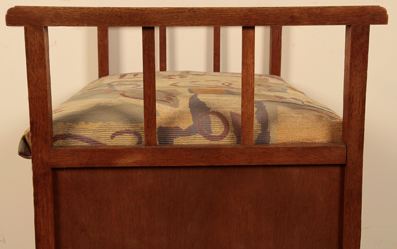 Die Sitzbank befindet sich im unrestauriertem Originalzustand mit altersbedingten Gebrauchsspuren.