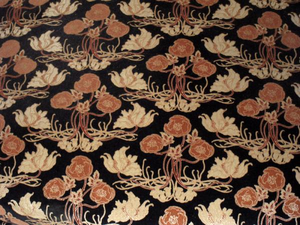 Erwähnenswert ist zudem der wunderschöne und gut erhaltene Bezug mit floralem Motiv und anmutiger Farbgestaltung. Die Sitzgruppe ist insgesamt in sehr gutem Originalzustand mit entsprechenden altersbedingten Gebrauchsspuren.