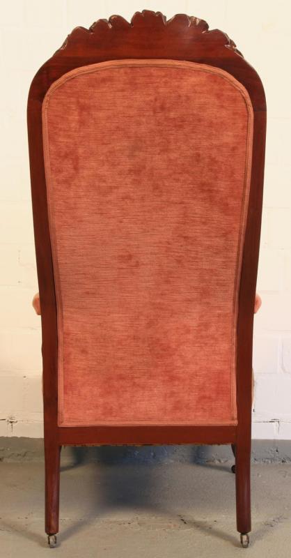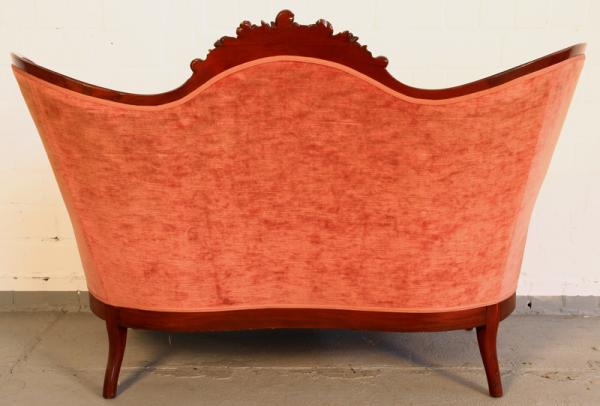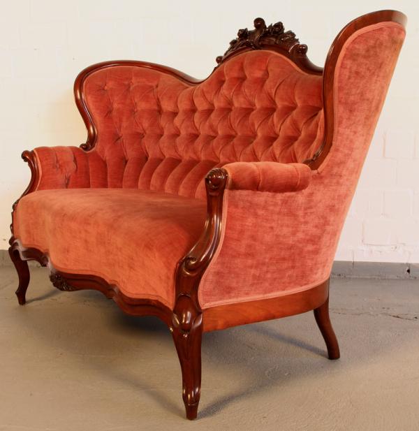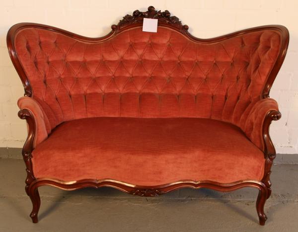 - außergewöhnlich hohe Rückenlehne des Zweisitzers mit tief im Polster befindlichen Ziernägeln