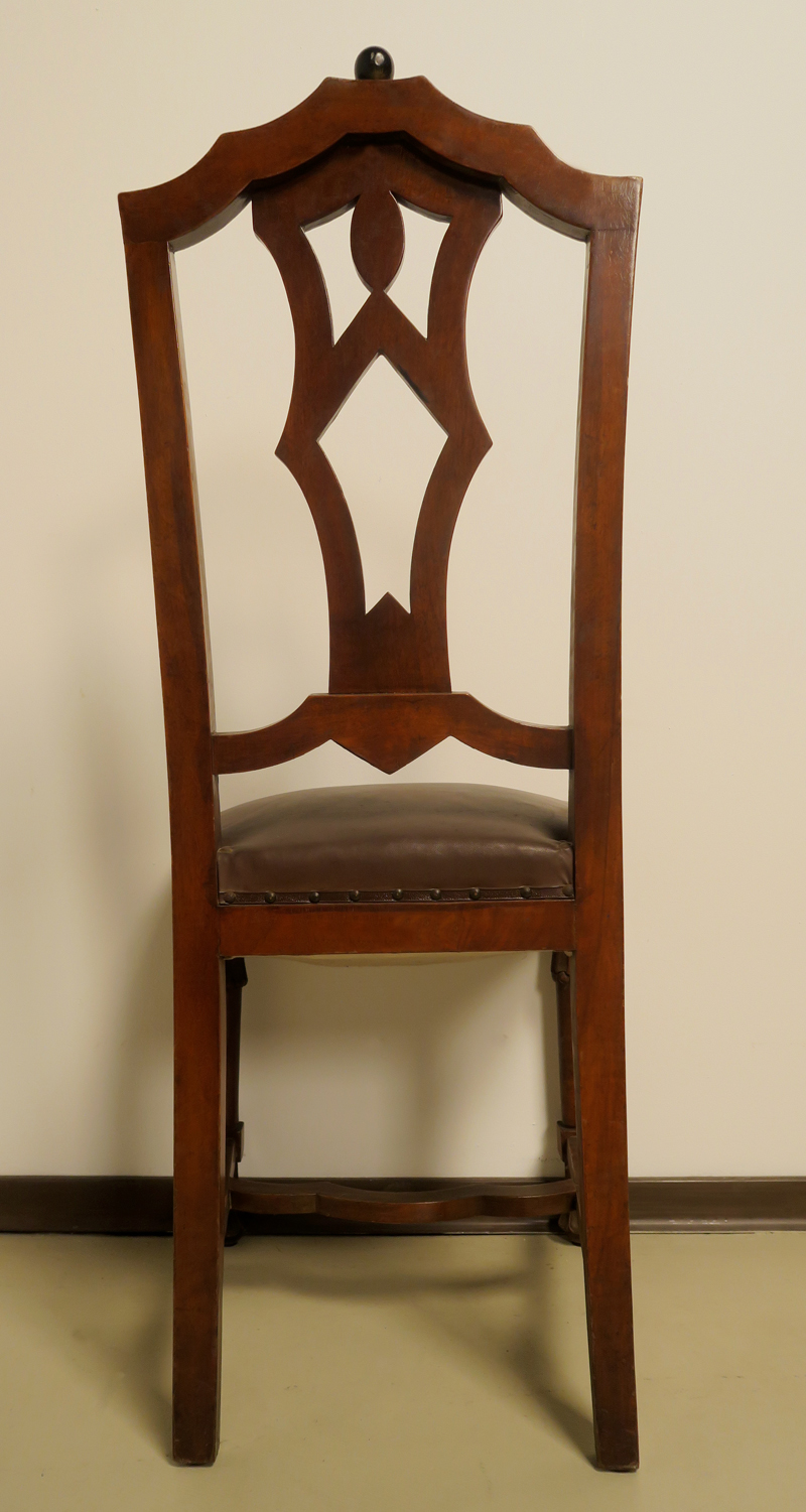 Die Sitzgruppe besteht aus sechs Stühlen und einem Esstisch.