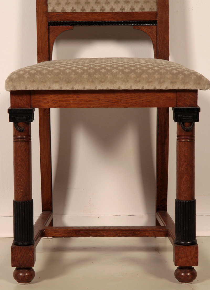 Hier können wir Ihnen ein schönes Paar Jugendstil Stühle anbieten, die um 1910 aus bester Eiche, massiv und furniert, gefertigt wurden und durch ihre Gestaltung und Ausstrahlung begeistern.