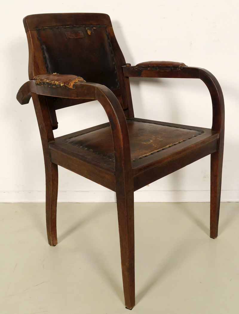 Der Armlehner befindet sich im unrestauriertem Originalzustand mit entsprechenden Gebrauchsspuren. Gerne sind wir Ihnen bei der Restauration behilflich.