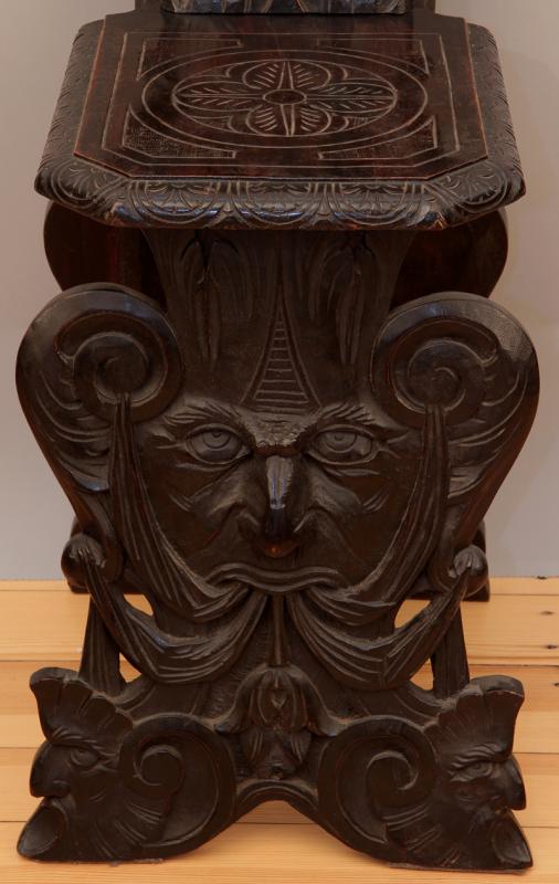 Hier können wir Ihnen vier unvergleichliche Brettstühle anbieten, die um 1870 aus feinster Eiche, massiv und furniert, in Italien gefertigt wurden. Sie beeindrucken durch ihre meisterliche Fertigung und wunderbare Patina.