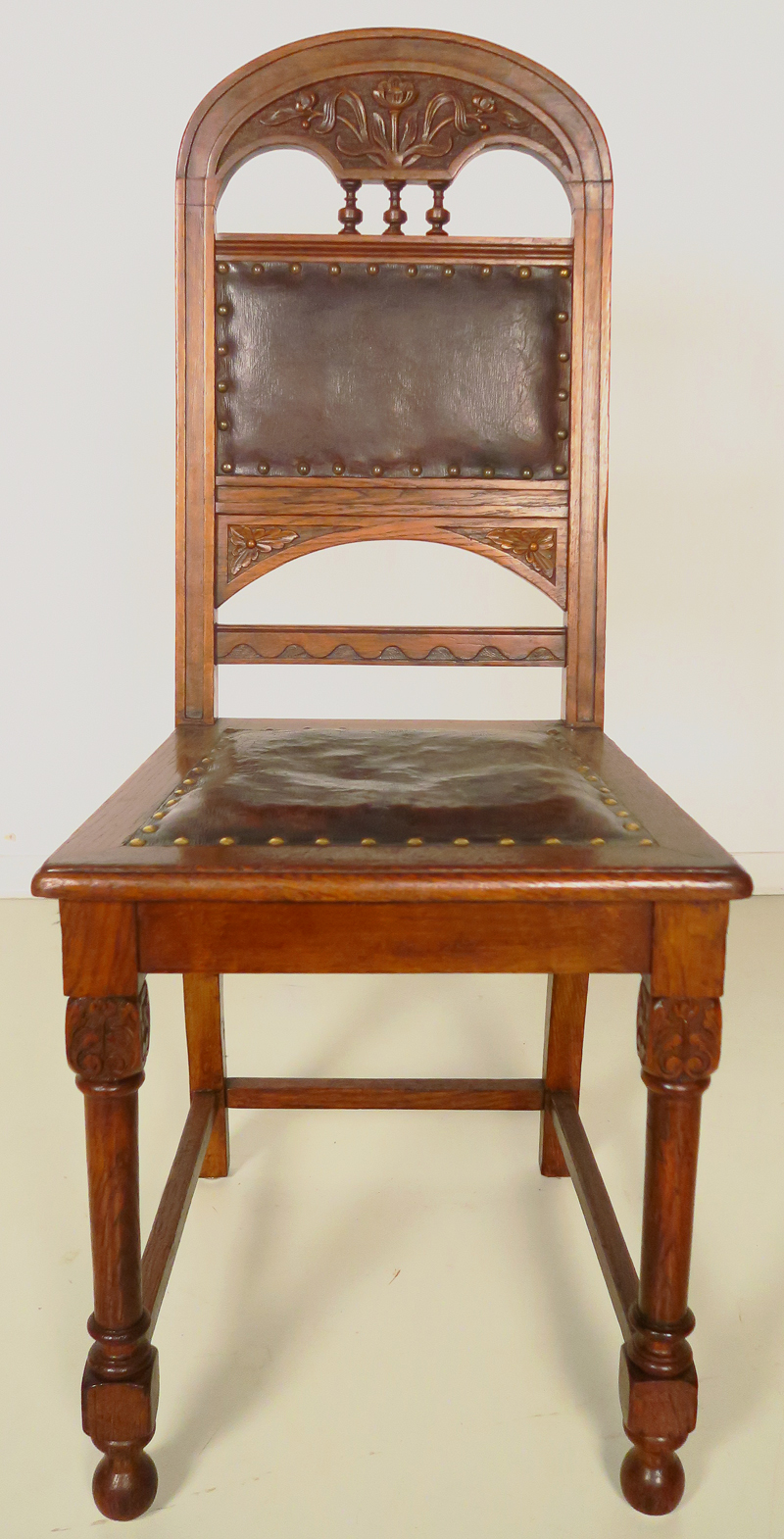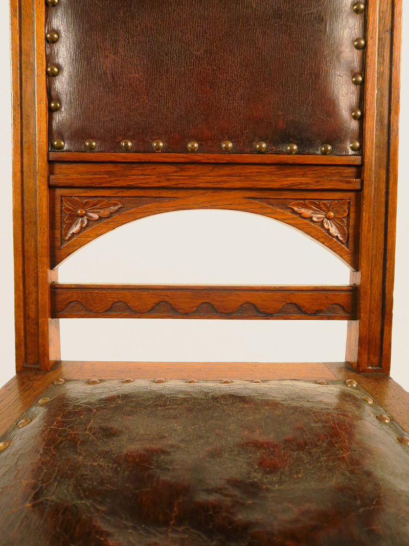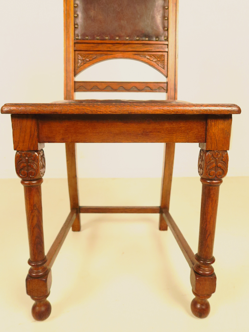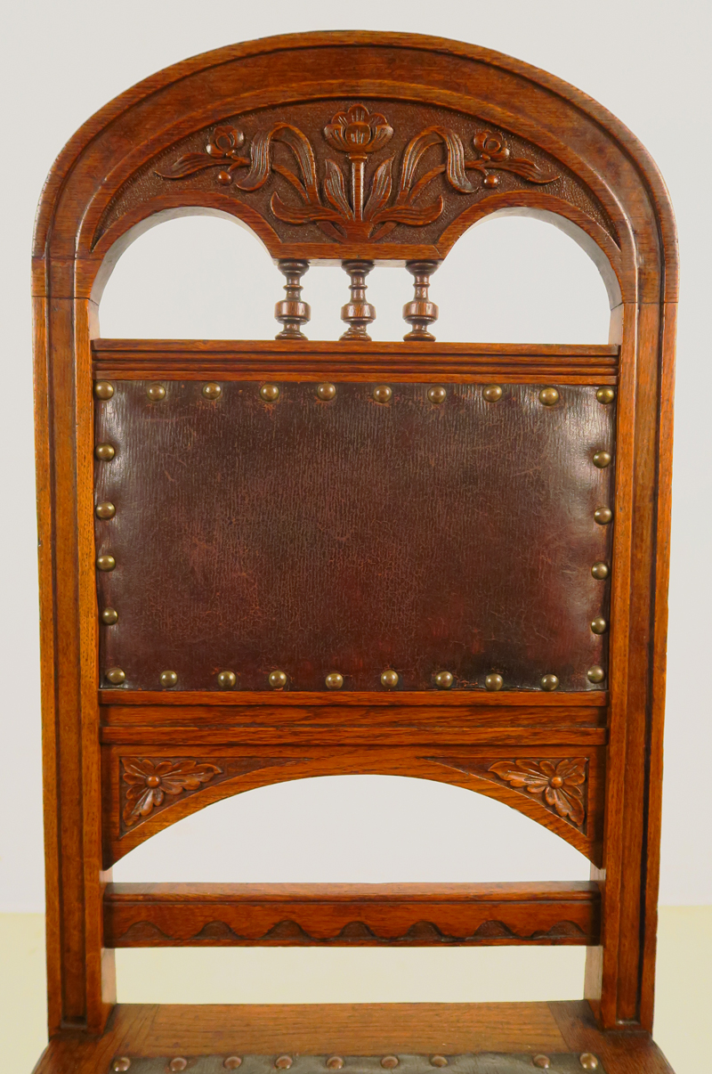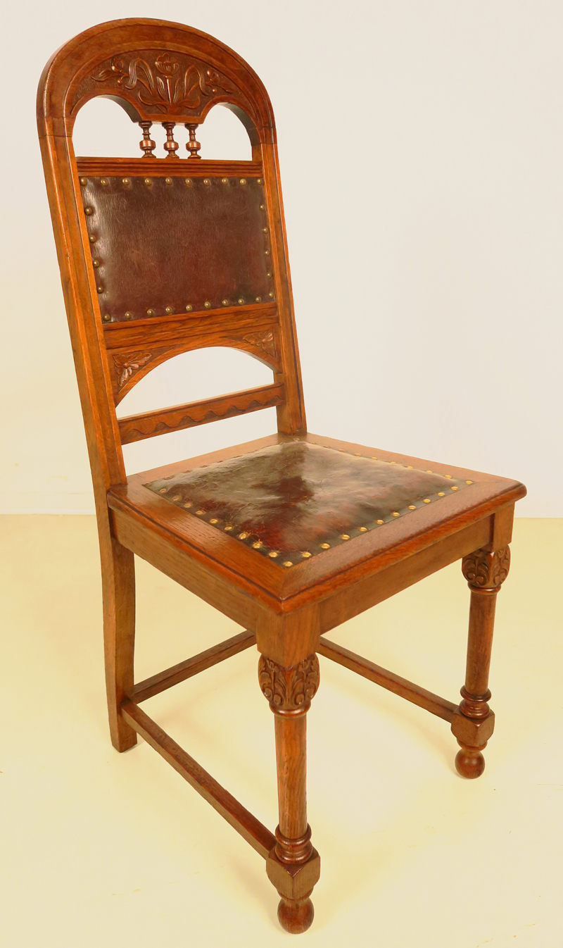 Hier bieten Sie auf einen fantastischen Stuhlsatz aus der eleganten Jugendstilepoche, gefertigt um die Jahrhundertwende aus Eiche, massiv und furniert. Seine Eleganz und filigrane Gestaltung machen ihn zu einem wahren Hingucker.