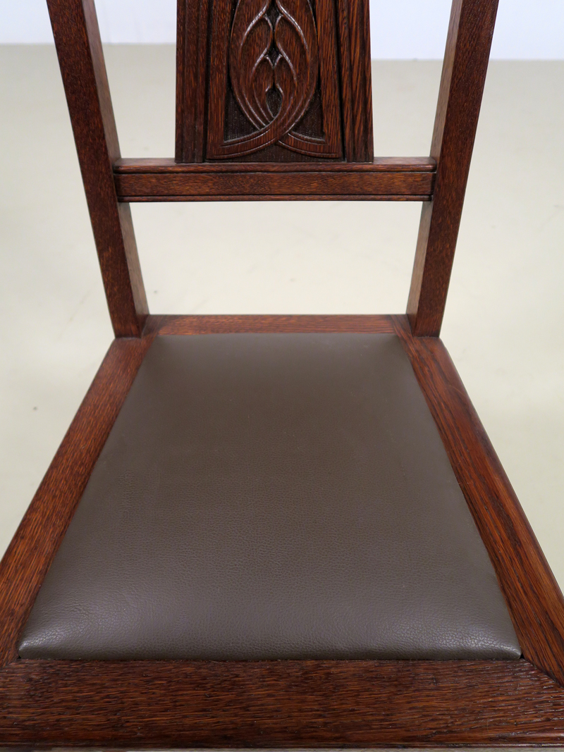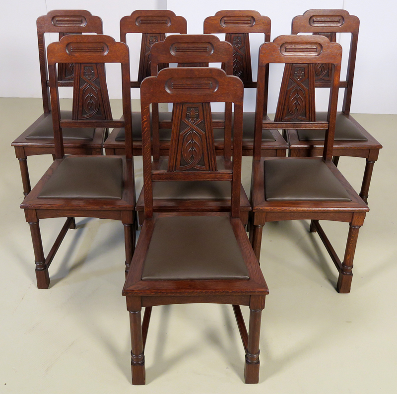Hier können wir Ihnen einen seltenen 10er Gründerzeit Stuhlsatz anbieten, der um die Jahrhundertwende aus bester Eiche, massiv und furniert, gefertigt wurde und durch seine Gestaltung begeistert. Dieses einmalige Ensemble ist von ausserordentlicher Qualität!