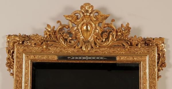 Hier können wir Ihnen einen fantastischen vergoldeten Spiegel aus dem imposanten Historismus anbieten, der um 1880 in meisterlicher Manier gefertigt wurde.