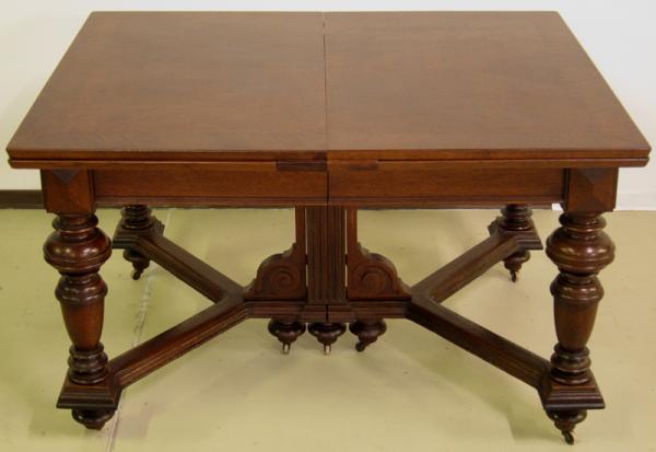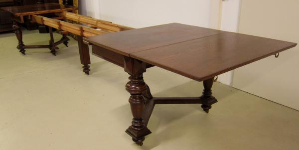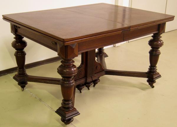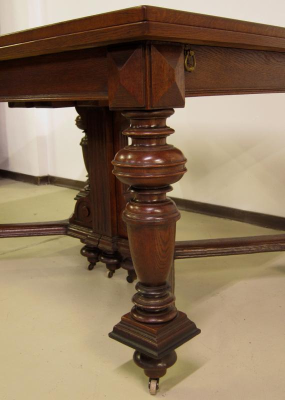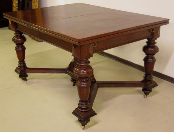 Hier präsentieren wir Ihnen einen wundervollen Speisetisch aus der edlen Gründerzeit. Seine formschöne Gliederung und hochwertigen Details machen ihn zu einem würdigen Repräsentant dieser Kunstepoche. Hervorzuheben sind unter anderem: