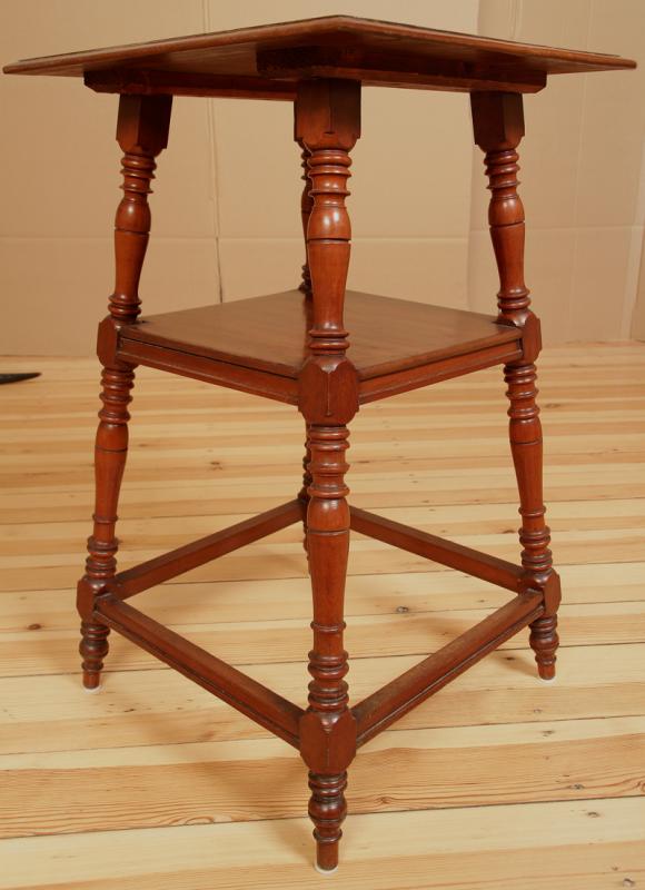 Hervorzuheben sind die klassische Grundform, die schön gedrechselten Beine, der funktionale Regalboden, das kannelierte Fußkreuz oder die einfach profilierte Deckplatte mit famosem Furnierbild und harmonischen Farbnuancen.