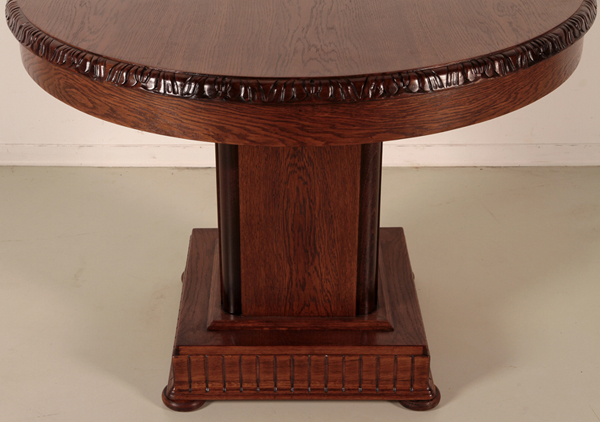 Heute haben wir einen restaurierten Beistell- Spieltisch für Sie im Angebot. Dieser hübsche Tisch wurde um 1910 aus bester Eiche, massiv und furniert, gefertigt und begeistert durch seine herrschaftliche Architektur und filigranen Details.