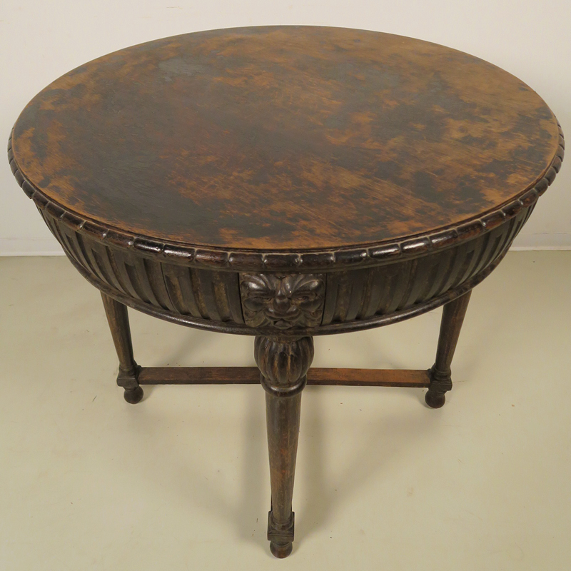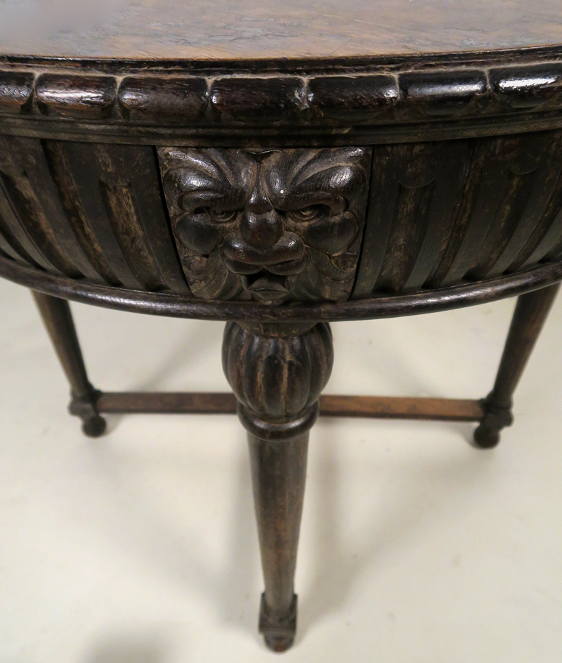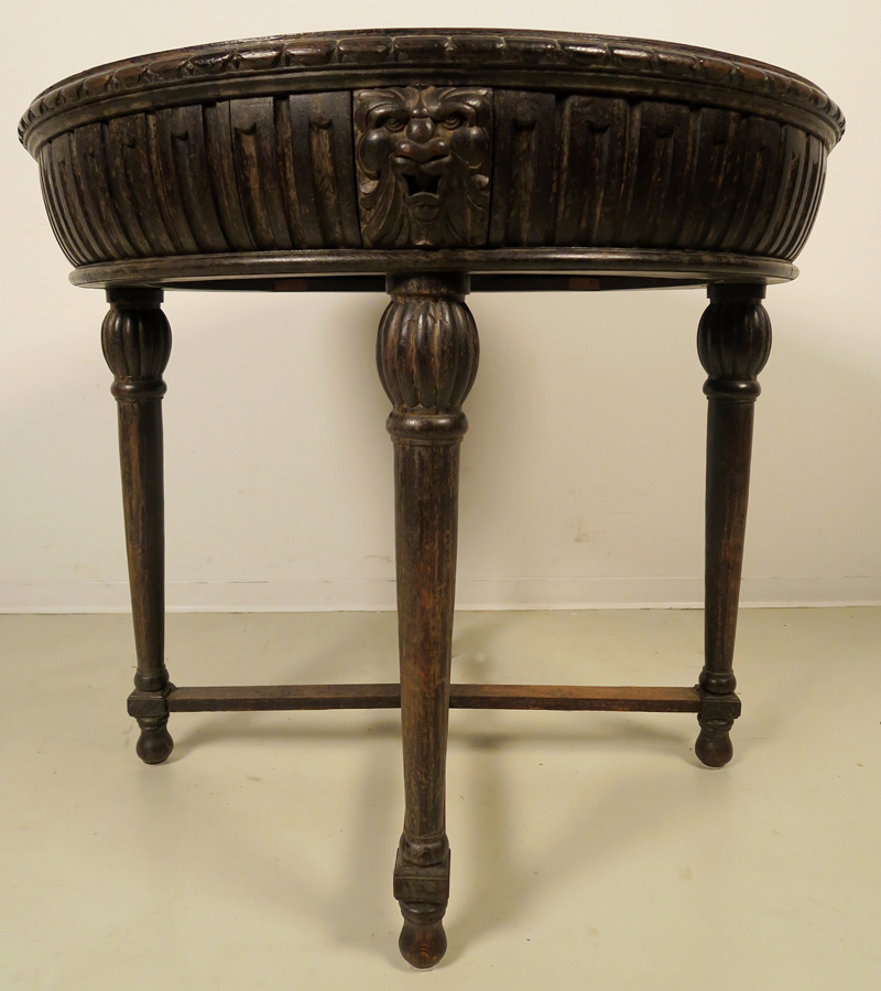 Hier bieten wir Ihnen einen eindrucksvollen runden Beistelltisch gefertigt um die Jahrhundertwende aus bester Eiche, massiv und furniert. Er begeistert durch seine meisterliche Verarbeitung und erhabene Ausstrahlung.