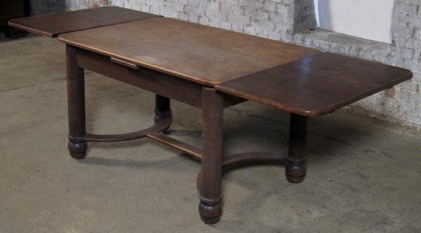 Der Tisch ist auf über 2,40 Meter ausziehbar und in gutem Originalzustand mit entsprechenden altersbedingten Gebrauchsspuren.