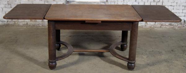 Hier bieten Sie auf einen Küchentisch aus dem Art Deko, gefertigt um 1920 aus Eiche, massiv und furniert.