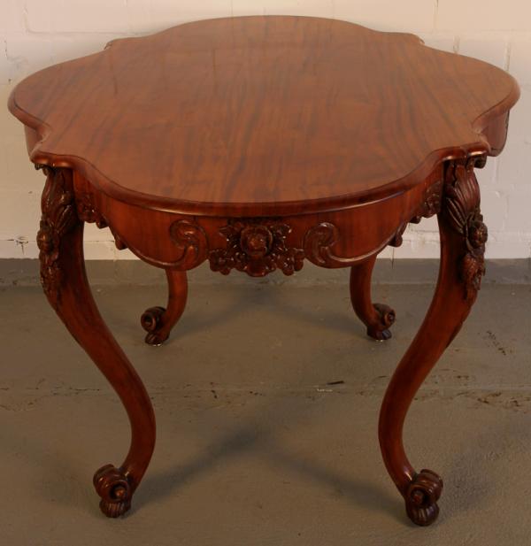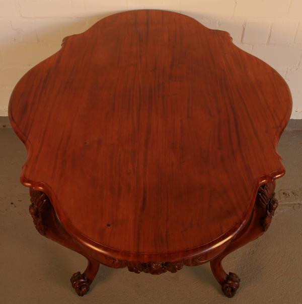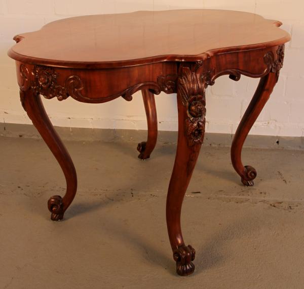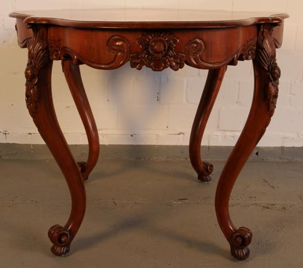 Hier bieten wir Ihnen einen sehr schönen Ess- oder auch Beistelltisch der Louise-Philippe-Epoche an. Um 1880 aus bestem Mahagoni, massiv und furniert, gefertigt sind es zum einen die fein geschwungene Linienführung als auch die zauberhaften Schnitzereien die hier gefallen.