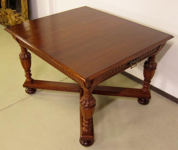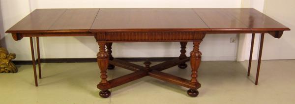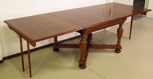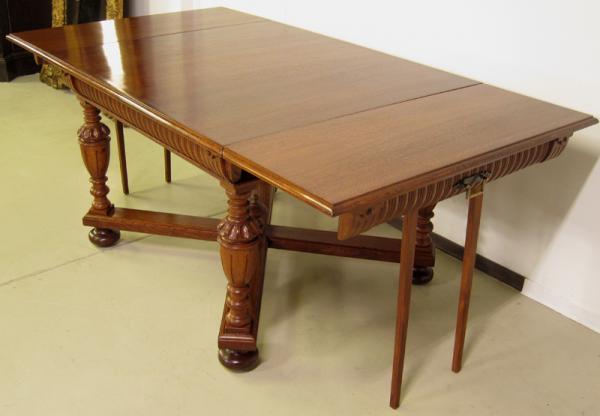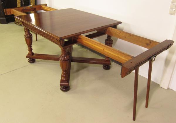 Hier bieten wir Ihnen exklusiv ein absolutes Schmuckstück der herrschaftlichen Gründerzeit an. Dabei handelt es sich um einen fantastischen Esstisch mit feinster, erhabener Ausstrahlung und exqusiten Details. Diese nehmen sich folgendermaßen aus: