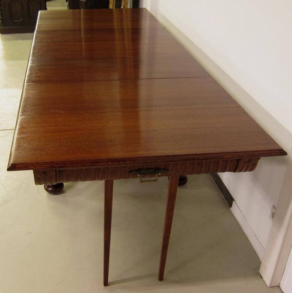 Der Esstisch ist in sehr gutem Zustand und wurde kürzlich komplett fachmännisch restauriert. Er weist daher nur sehr geringe altersbedingte Gebrauchsspuren auf.