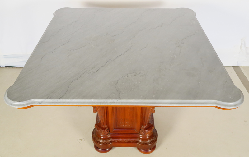Besonders imposant ist die riesige Marmorplatte in wunderschöner Form, die vier vollplastischen Putten welche den Tisch tragen sowie die schönen Epochen- typischen Kugelfüße.