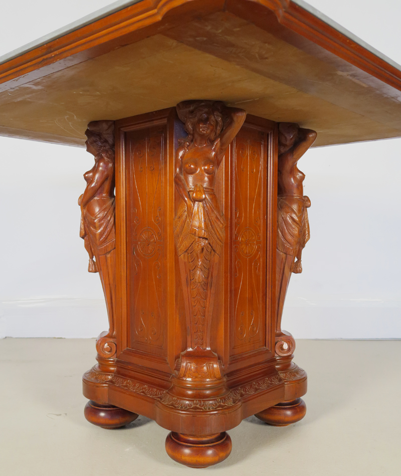 Hier offerieren wir Ihnen einen sensationellen Salontisch aus der Gründerzeit, gefertigt um 1880/90 aus feinstem Nussbaum, massiv und furniert.