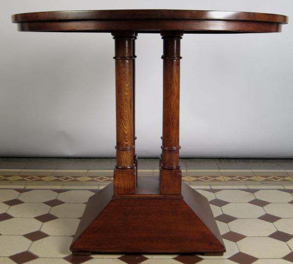 - vier massive, gedrechselte Vollsäulen als Tischbein auf kleinen Sockeln