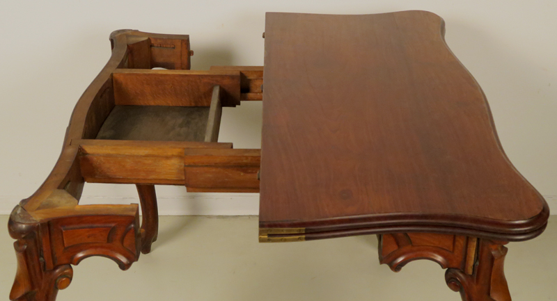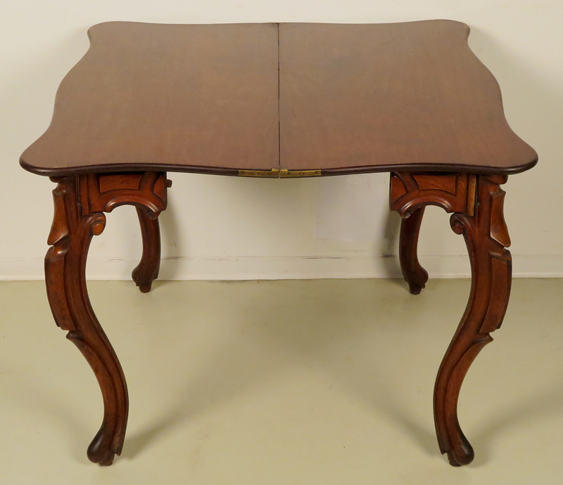 Hier können wir Ihnen einen zierlichen Spieltisch aus der eleganten Louis-Phillippe Epoche anbieten. Der Tisch gefällt neben seiner formschönen Architektur durch seine praktische Funktionalität. Er wurde um 1880 aus feinstem Mahagoni, massiv und furniert, gefertigt.