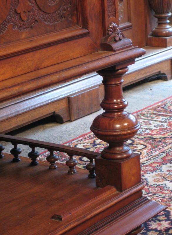 Fulminantes Stollenvertiko der Gründerzeit, gefertigt um die Jahrhundertwende aus feinstem Nussbaum, massiv und furniert. Es begeistert durch seine bestechende Qualität und herrschaftliche Eleganz.