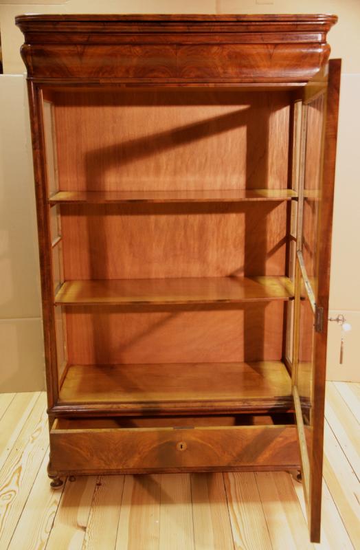 Hier bieten wir Ihnen exklusiv ein sensationelles Möbelstück an. Diese traumhafte Vitrine aus der frühen Louis-Philippe Epoche bezaubert durch ihre edle Ausstrahlung und elegante Linienführung. Sie wurde um 1830 aus feinstem Mahagoni, massiv und furniert, gefertigt.