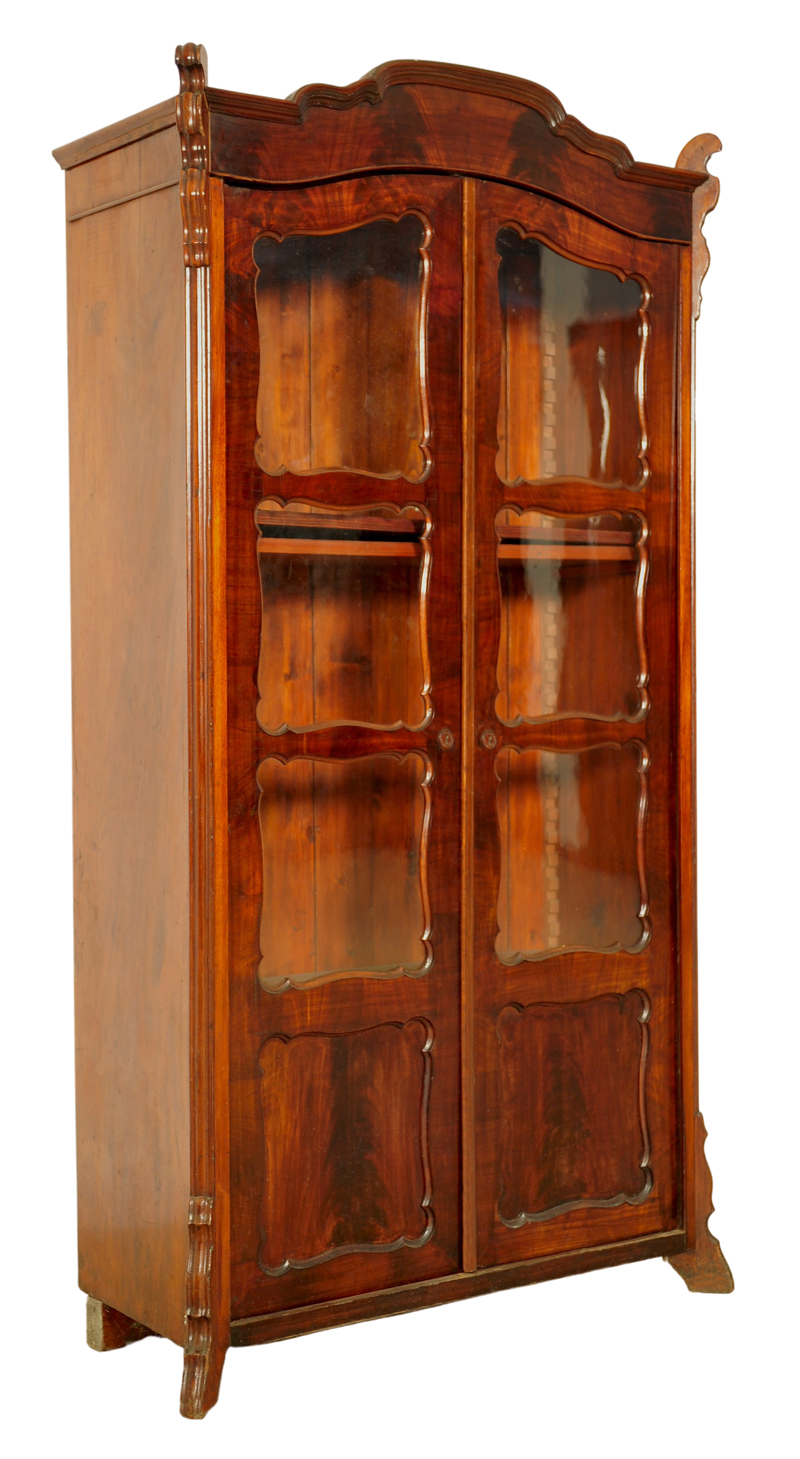 Heute dürfen wir Ihnen eine wundervolle Vitrine anbieten. Aus der herrschaftlich-eleganten Louis-Philippe-Epoche wurde dieses Exponat um 1880 aus bestem Pyramidenmahagoni, massiv und furniert, gefertigt.